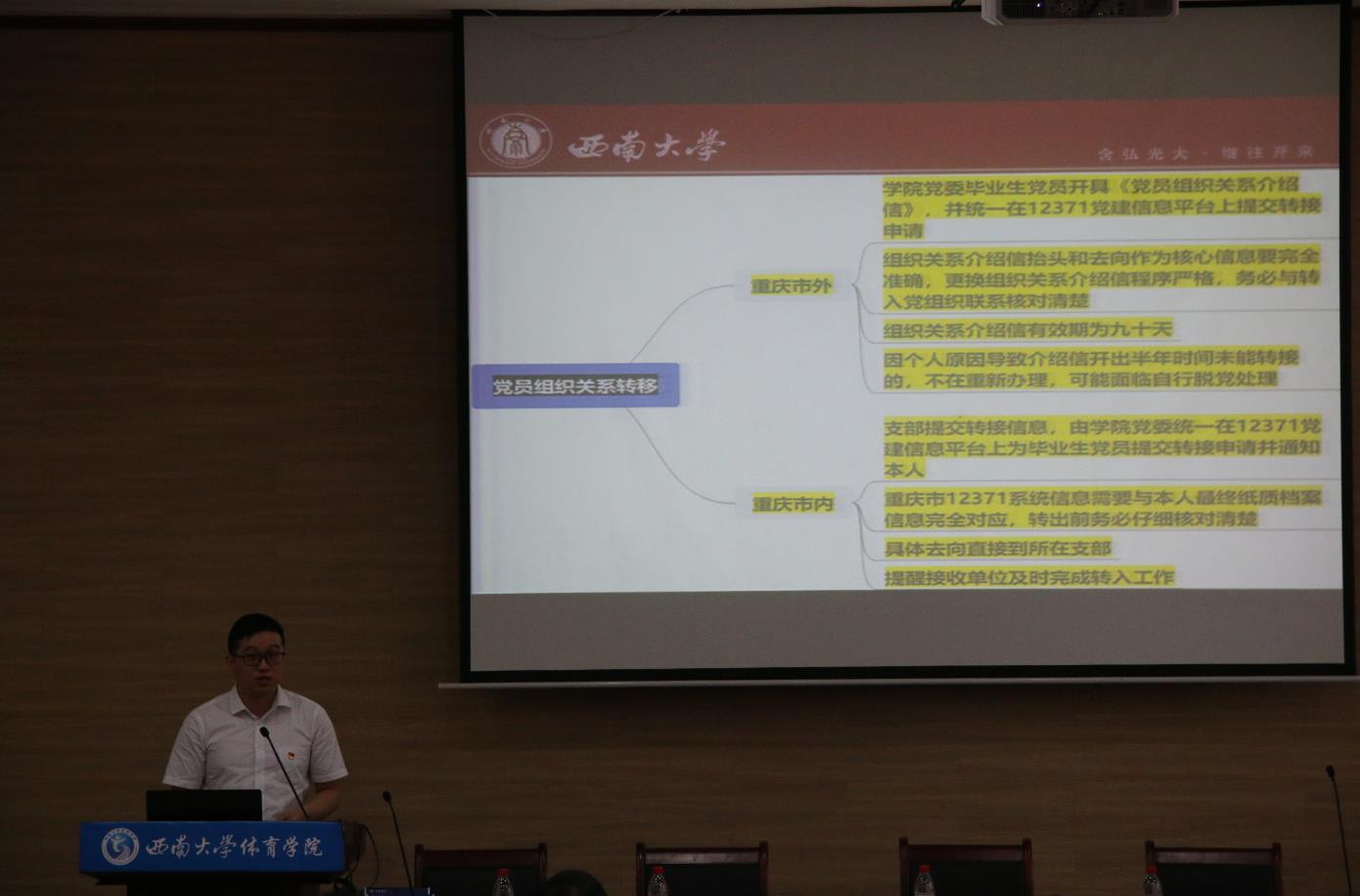 6月18日,公司党委在学院109报告厅举行毕业生党员专题教育,公司党委委员、毕业党支部支部书记、毕业生党员和新发展党员代表参会。