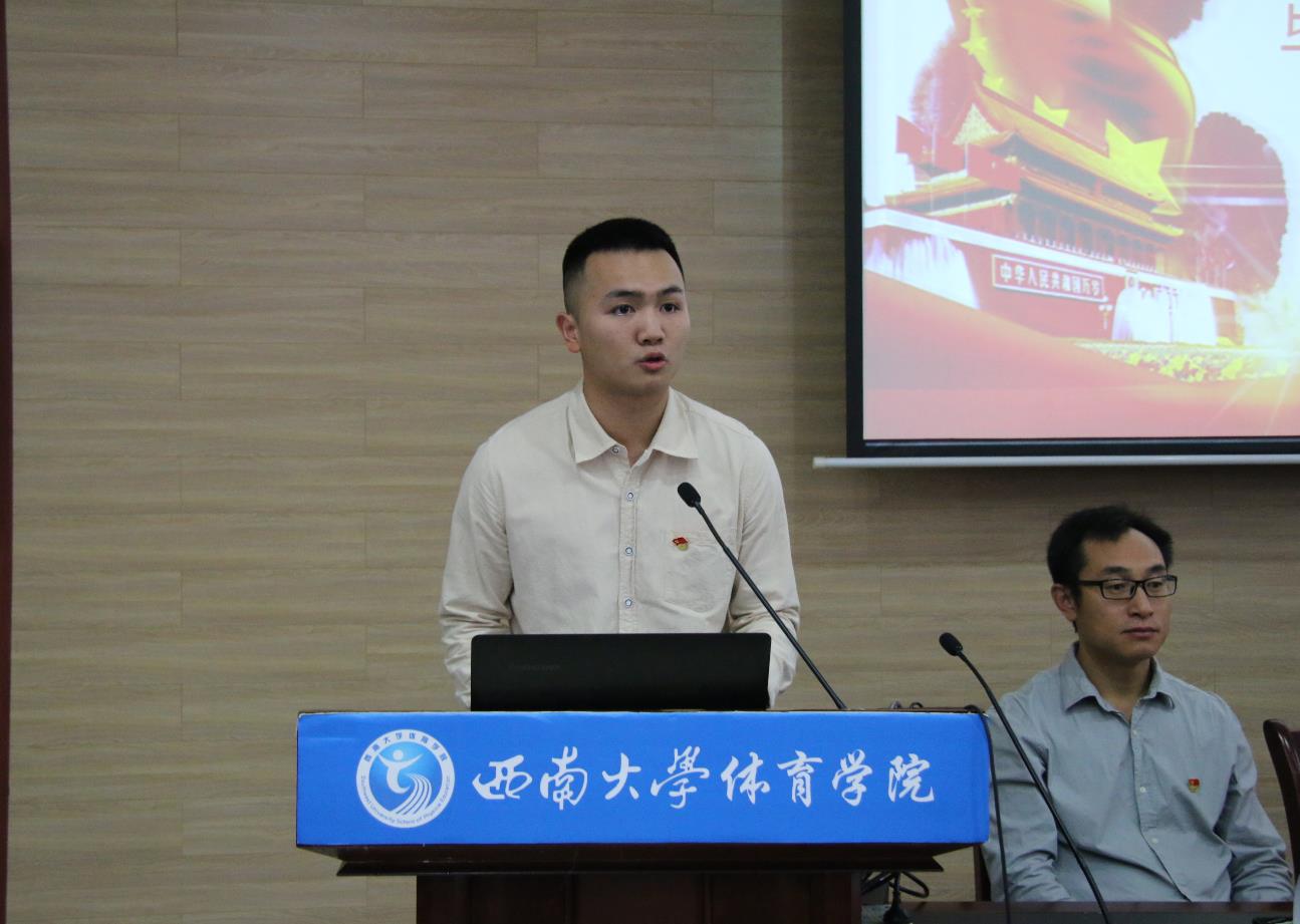 在老党员重温入党誓词和新党员入党宣誓仪式上,姜立惠书记寄语全体毕业生党员做全面建成小康社会的见证者、基本实现社会主义现代化的建设者、建成社会主义现代化强国的贡献者、实现“中国梦体育梦”的领跑者。在场全体党员同唱国际歌,并面对党旗进行了庄严的宣誓仪式。毕业生党员代表吴柯志感恩母校和党组织,回顾了自己入党过程的成长与收获,倡议全体党员做遵纪守法,文明离校的表率并践行公司党委对毕业生党员提出的“五个一”要求。姜立惠书记希望全体党员同志以实际行动践行入党誓词,以优秀党员的标准严格要求自己,发挥好先锋模范作用,将个人的努力融入历史的进程,为国家、社会和学校学院的发展贡献自己的力量。
