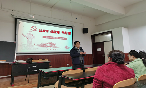 党委副书记、纪委书记张剑兰列席指导教工一支部主题党日活动,从换届工作的重要性、严肃性、操作性方面进行了提醒,希望教师党员做好表率,营造风清气正的换届选举环境。