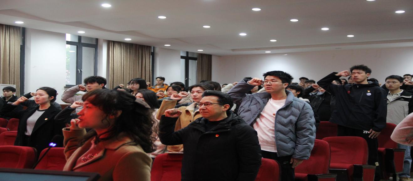 罗义文给全体党员讲授了《强化党员意识,做好“五个带头”》的专题党课,希望带头学习提高,加强政治理论学习,学好党章、党规、党史,用党的创新理论指导实践;带头争创佳绩,在学习掌握专业技能、知识理论方面出成绩做表率;带头服务群众,主动践行党的宗旨,提升服务意识,在细微处着力;带头遵守纪律,遵守校规校纪、课堂纪律、竞赛规程;带头弘扬正气,发扬斗争精神,主动抵御不良诱惑和不良风气,争做合格党员、优秀员工、未来栋梁。他寄语全体党员,要以此次宣誓仪式为契机,进一步增强党性修养,提升综合素质,以实际行动践行党的宗旨,为学院高质量发展和学风建设作出新的更大贡献。
