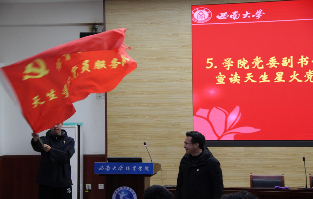 会上,张剑兰宣读了第四届天生星火党员服务队人员名单,党委书记罗义文同志向服务队代表授旗,勉励全体党员结合学风建设积极投身志愿服务,发挥党员先锋模范作用。