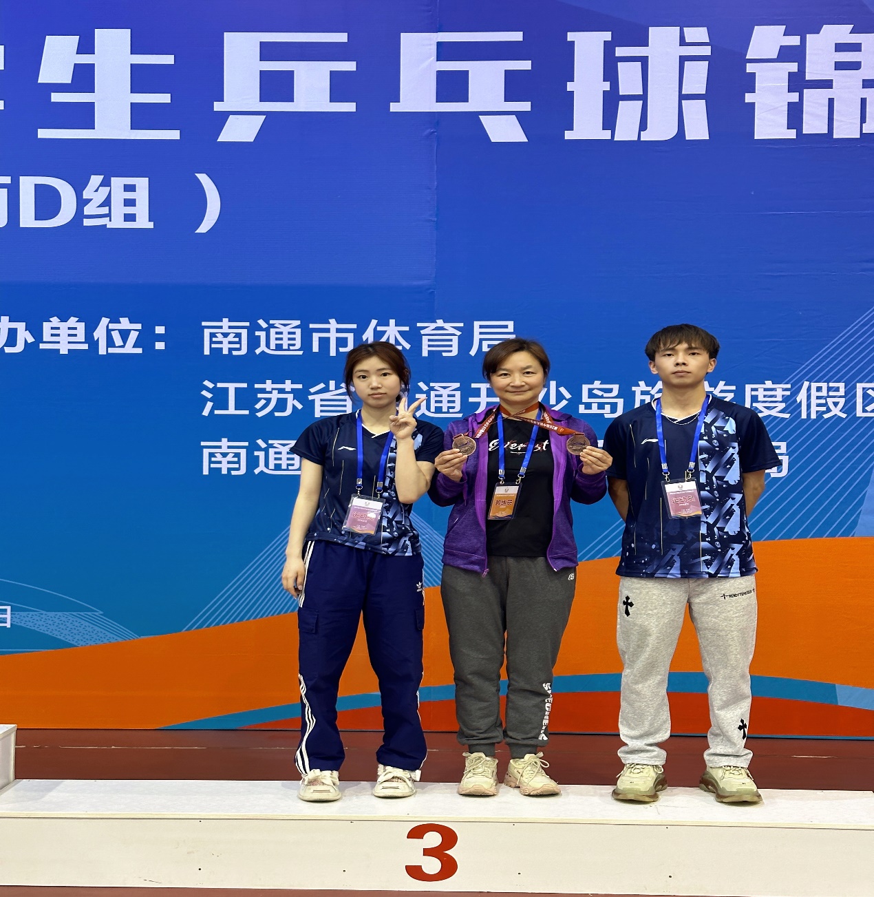 另讯,在4月11日刚结束的第26届全国老员工乒乓球锦标赛丙C组的比赛中,来自公司运动训练专业2021级的李佳静和2022级的刘明杰混双组合,不畏强手,顽强拼搏,一路过关斩将最终获得铜牌,实现了公司乒乓球队在校员工在全国老员工乒乓球锦标赛奖牌榜零的突破。