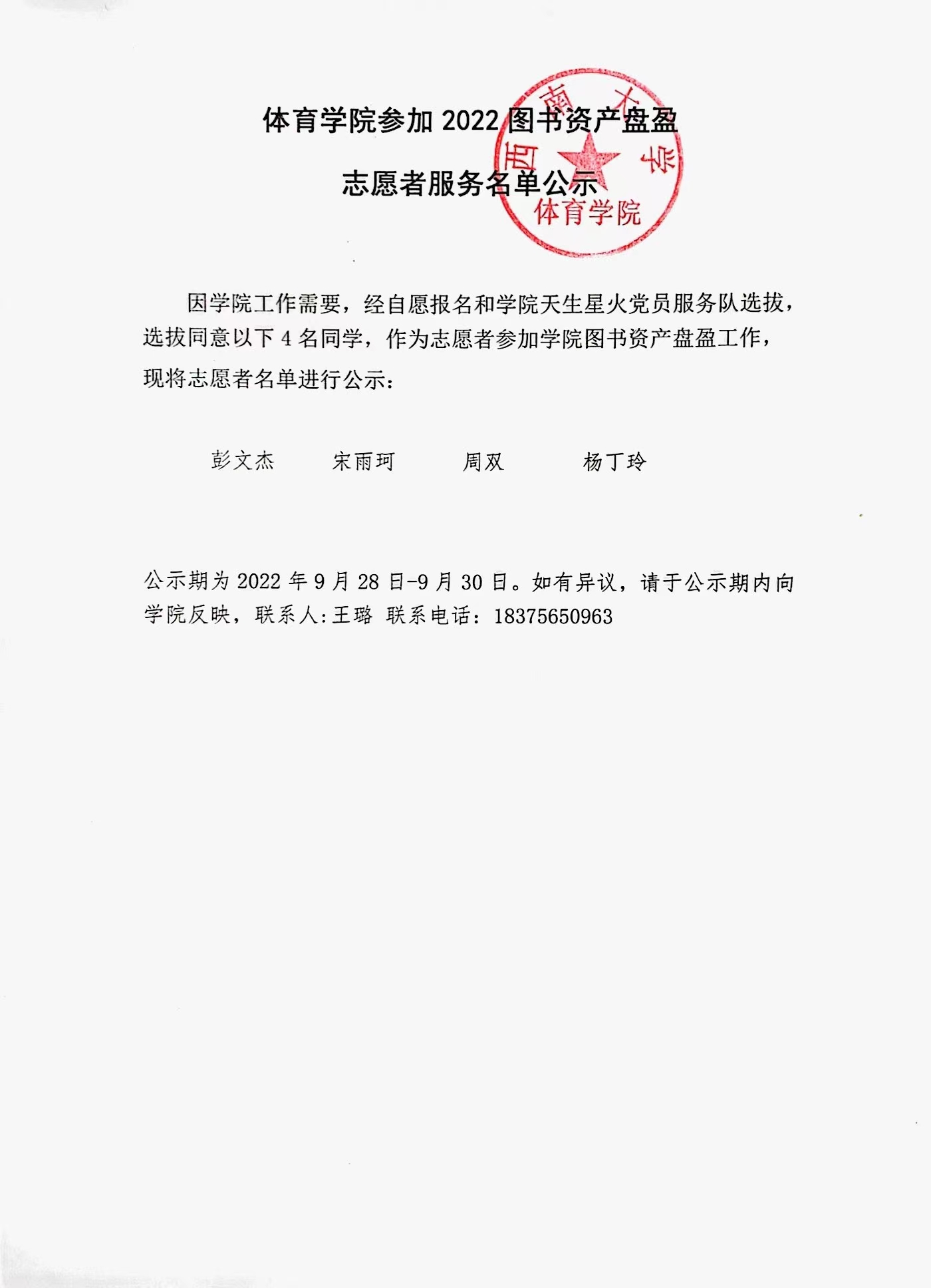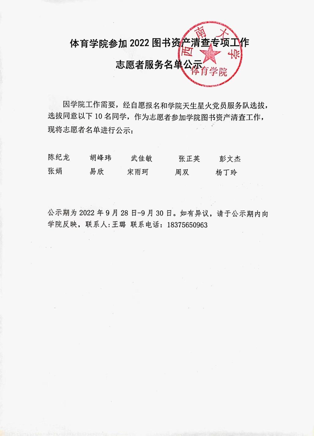 xc体育图书清查及盘盈志愿者名单公示