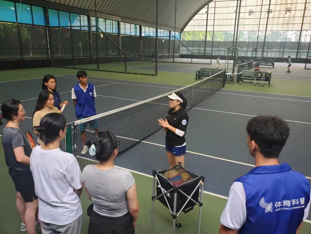 第五运动场里,网球专项教练向前来锻炼的师生员工进行运动前的知识科普;综合体育馆中,身穿体育科普服装的员工志愿者悉心为参加活动的师生调整发球动作。本次xc体育开展科学健身指导服务,旨在推动健身从“有”向“优”发展。健身指导项目负责人由xc体育的教师担任,每周定期与员工志愿者一起为师生员工提供服务,为广大师生员工体育活动蓬勃开展提供优质保障。