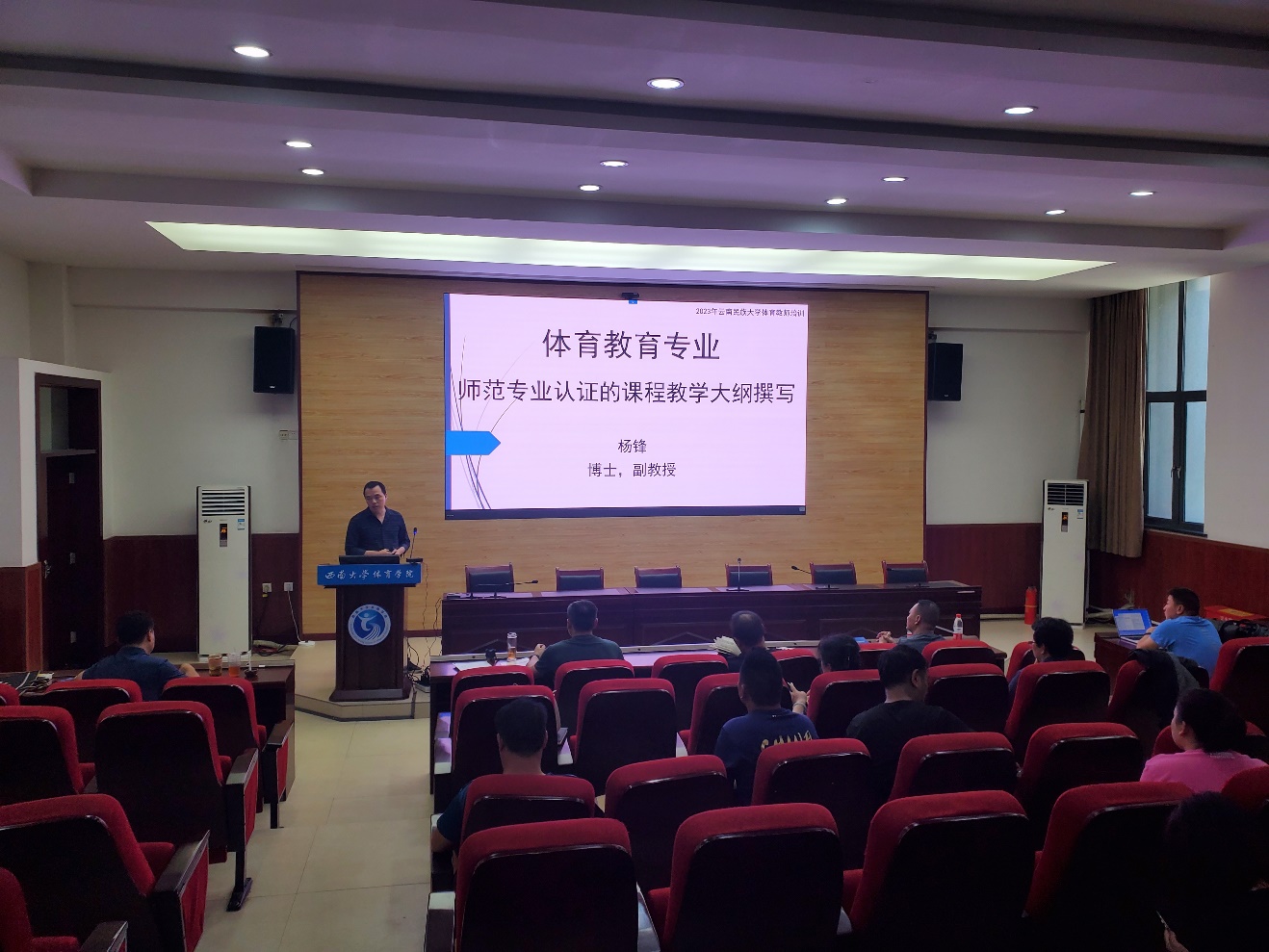 在此次培训中,xc体育邀请多位国内知名教授和xc体育教务处主任现场指导,他们分别就高校体育教师职业能力,体育教育专业师范类专业认证相关事宜等板块进行了详细的理论讲解。通过此次培训,参训教师提升自身的职业能力,并了解体育教育专业师范类专业认证相关事宜。今后xc体育会一如既往,增强与云南民族大学xc体育的相互交流,共同进步。